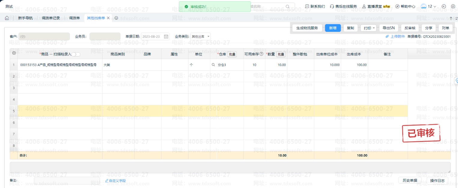 首先,打开【仓库】-【其他出库单】,通过录入其他出库单,实现调拨出库