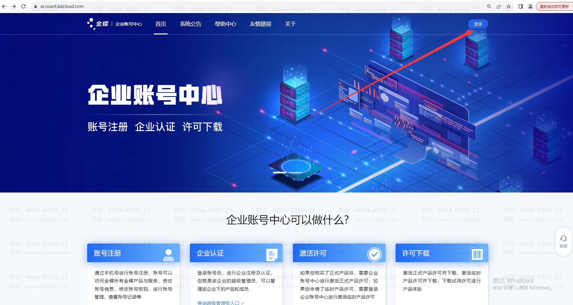 1、使用企业管理员(企业账号中心管理员)输入账号密码(也可手机号收验证码),登录至企业账号中心