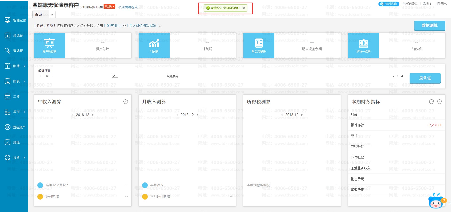 金蝶账无忧系统如何反结账