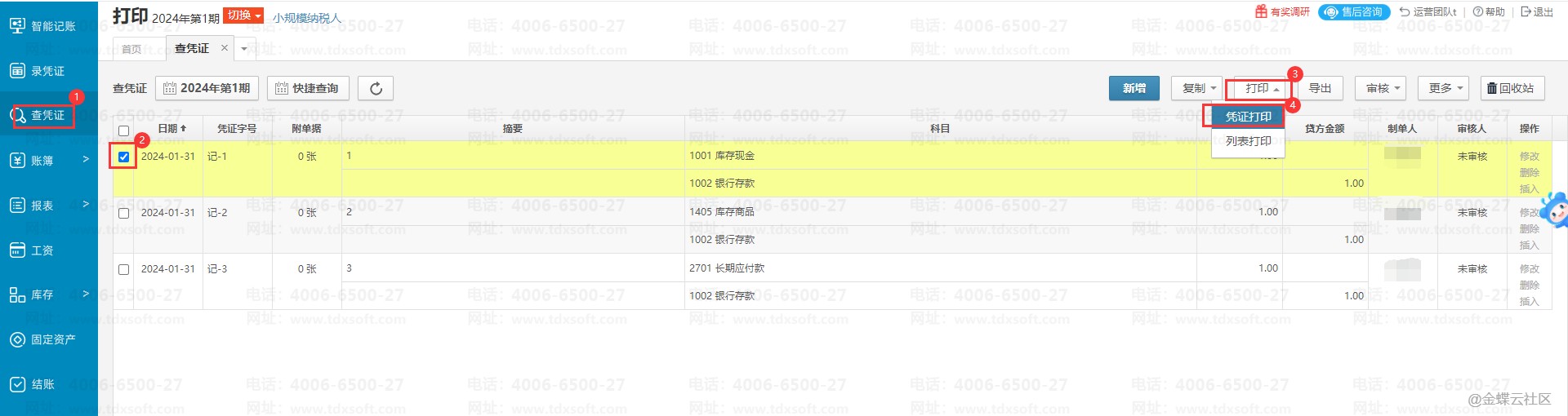 进入账套,点击【查凭证】→【打印】→【凭证打印】,选择【高级打印】,找到需要删除的打印模版,点击删除按钮,确认删除即可。
