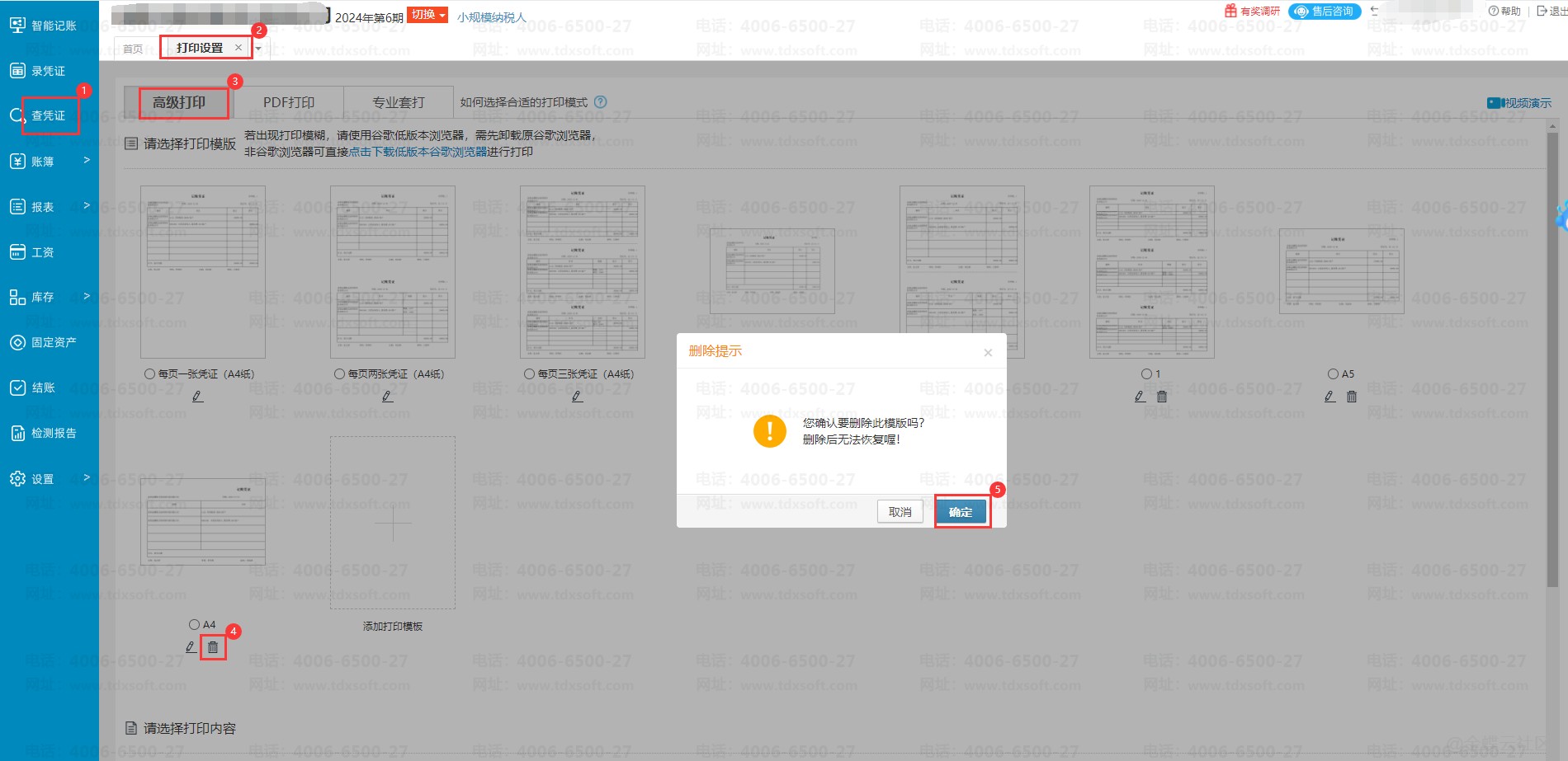 V5.0版本账无忧如何删除高级打印模版