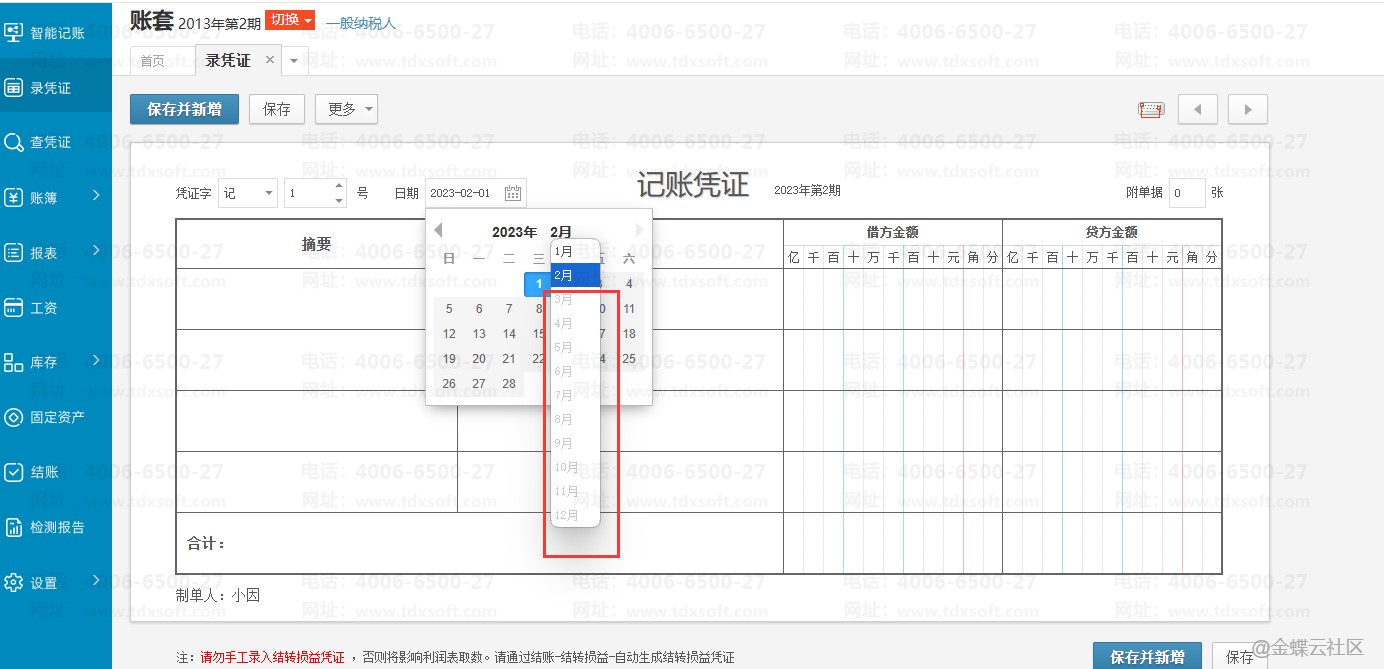 二者取小值,因此该账套录凭证的最大期间为2023年2月。