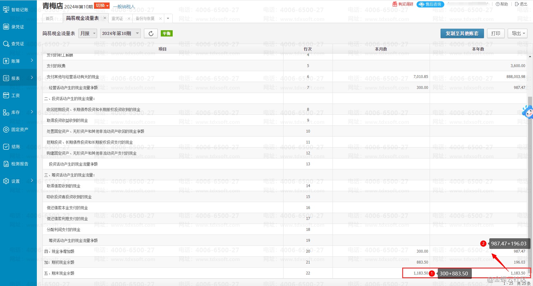 5、第22行次【期末现金余额】本月和本年数分别为第20行次【现金净增加额】+第21行次【期初现金余额】计算得出。