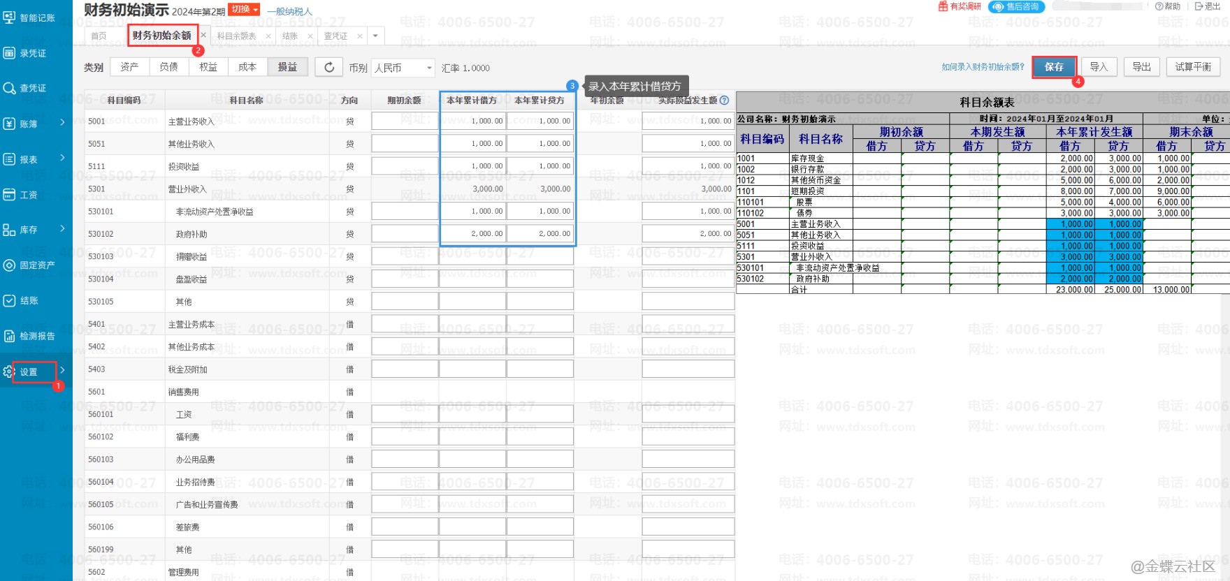 (1)期初余额和本年累计数的录入方法请参考下图,年初余额系统根据公式自动计算显示,无需手工录入