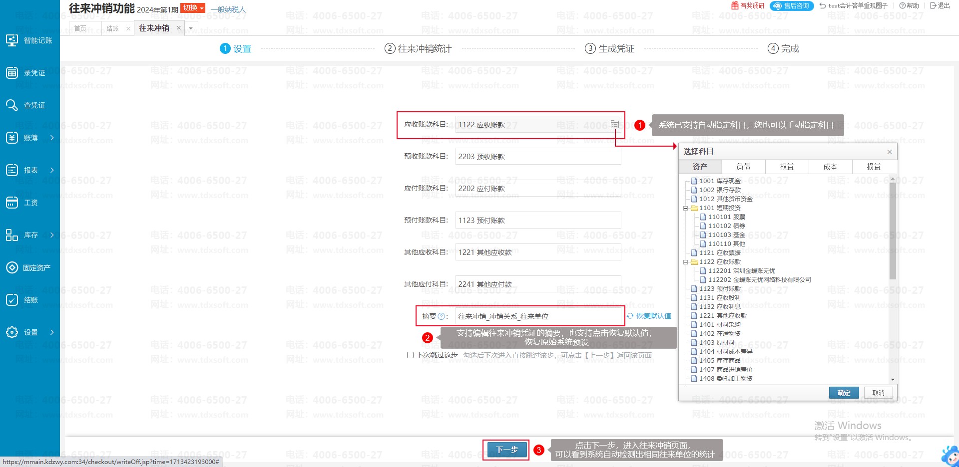 系统已经预设好往来冲销凭证的摘要规则,也支持手动修改;