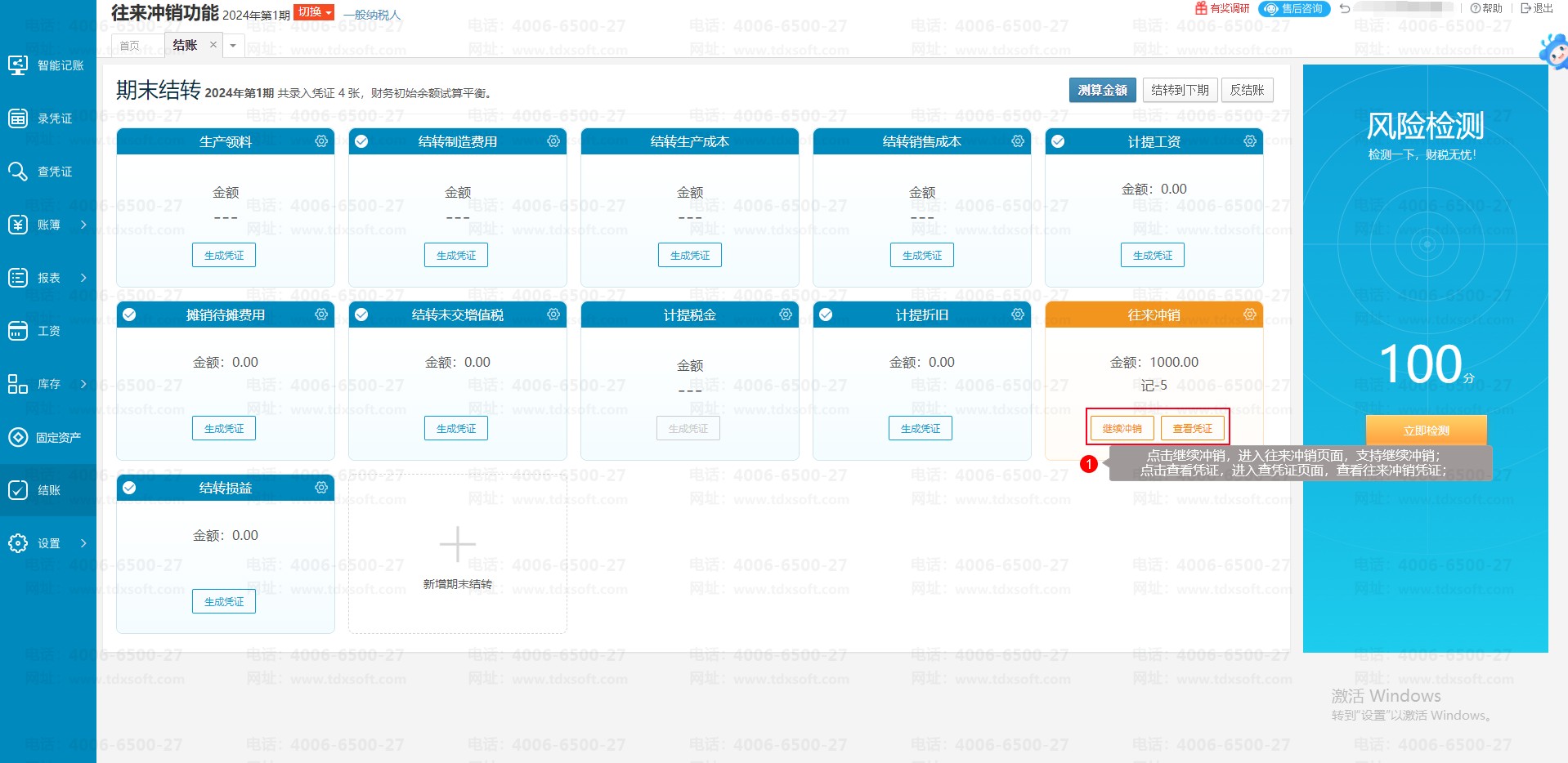 支持在结账界面点击【继续冲销】,生成多张往来冲销凭证;如果您点击【继续冲销】,页面没有往来单位展示,那恭喜您,您的账务质量很高,无需处理!