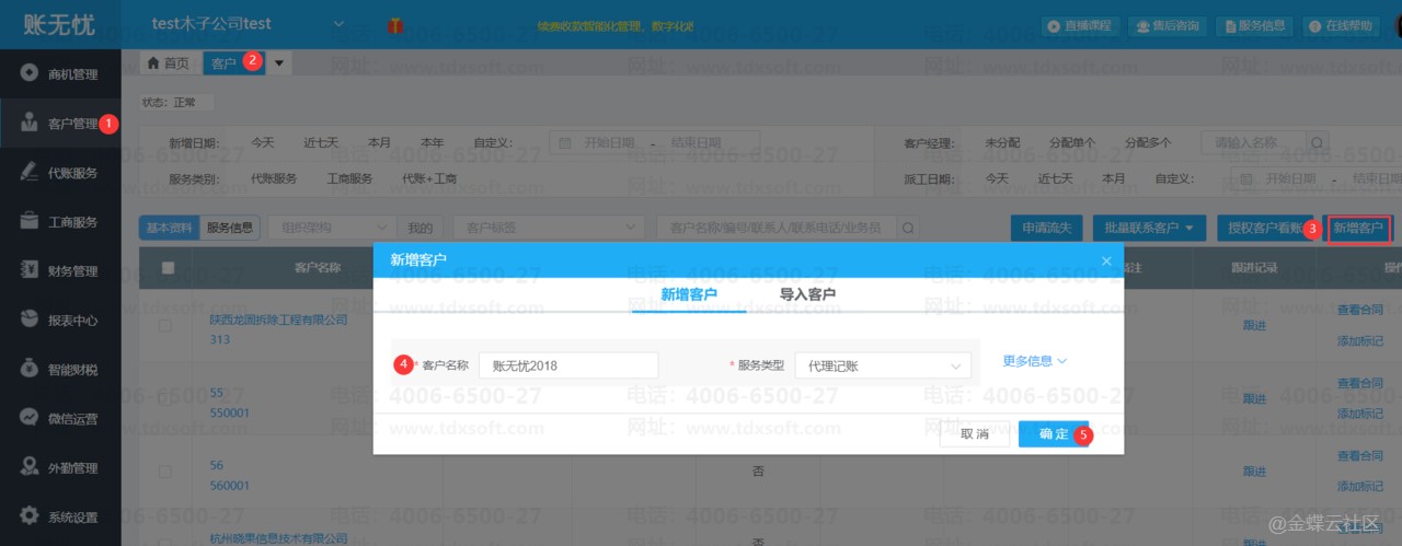 1)在【客户管理】→【客户】→【新增客户】界面分别创建不同的年份的客户名称