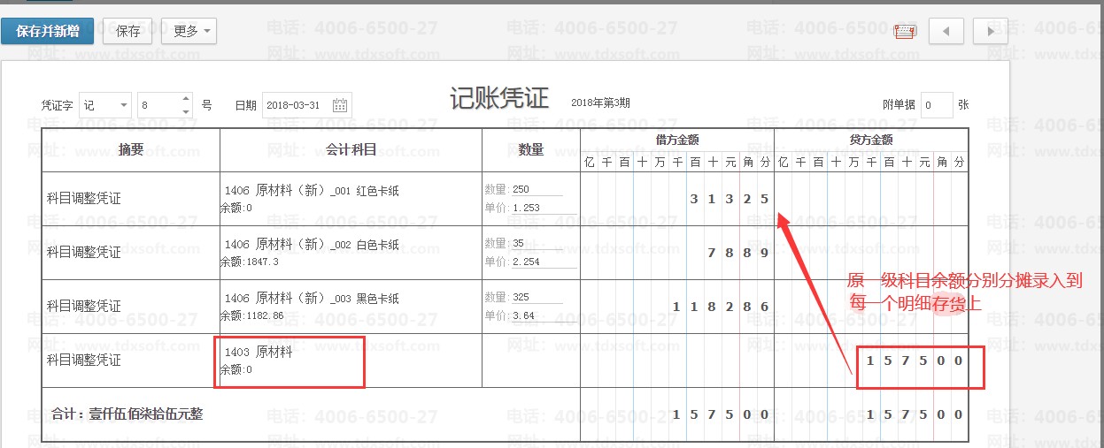 第三步:做一张结转凭证,把【原材料】数据手工录入凭证调整至新科目【原材料(新)】中即可