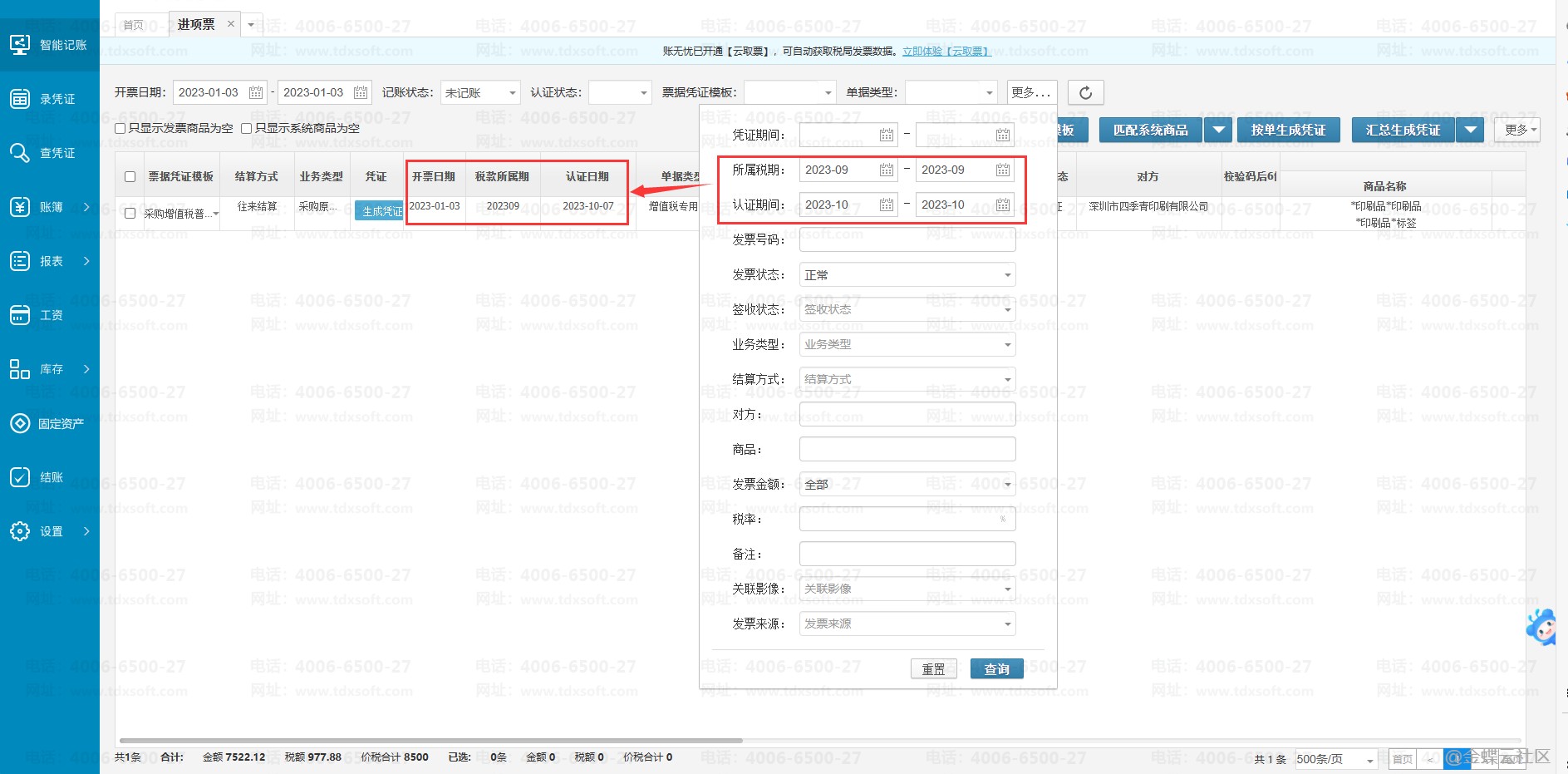 账无忧进项发票界面的开票日期、所属税期、认证期间和认证日期指的是什么