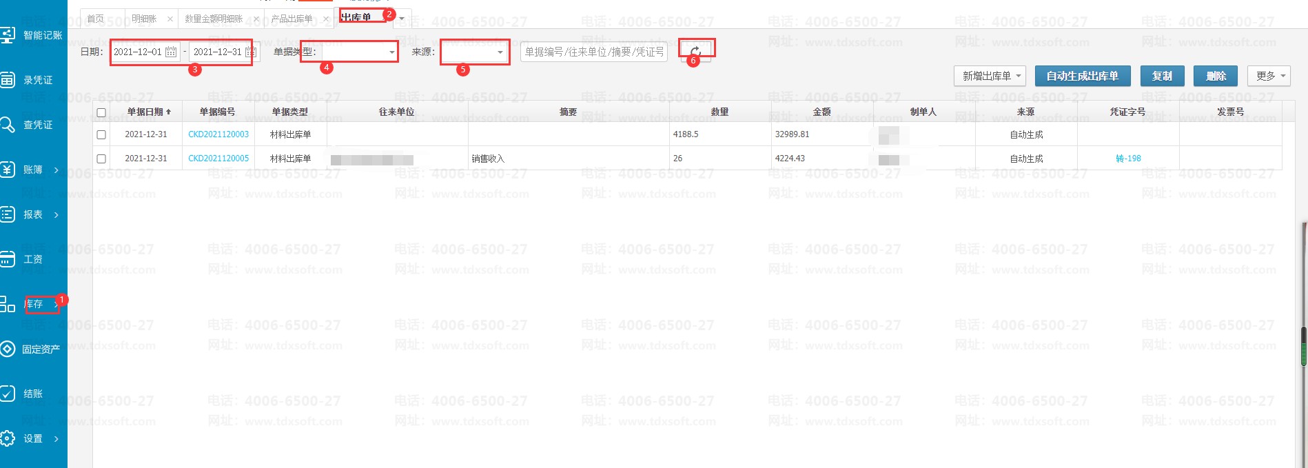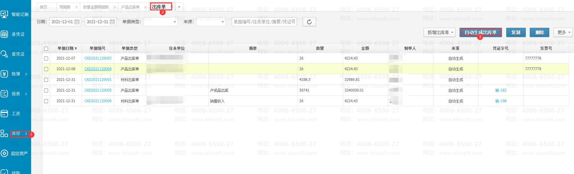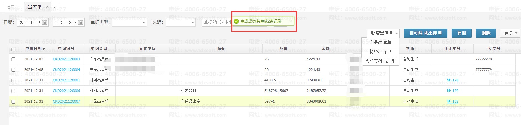注:此方式生成的出库单单据日期根据凭证日期生成。