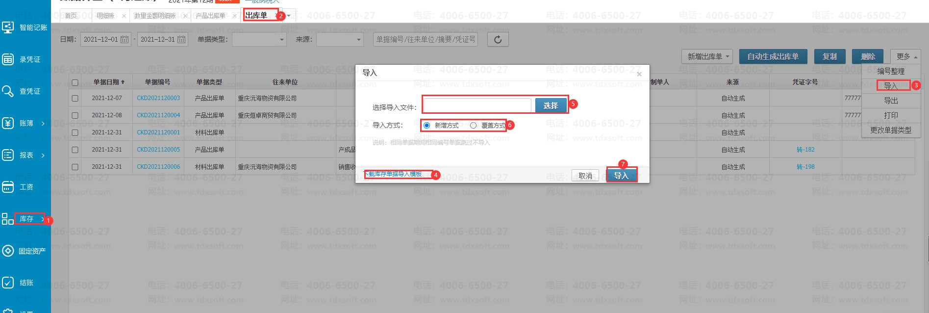 注:选择新增方式,当相同期间存在相同编号单据则跳过不导入;选择覆盖方式,当相同单据期间有相同编号单据则覆盖之前信息导入本次表格上的信息。