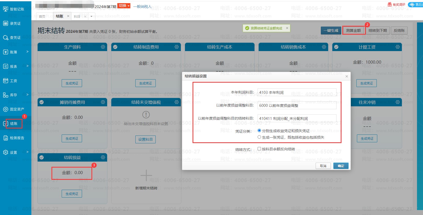1、点击结转损益卡片右上角的设置按钮,把以前年度损益调整项目的取数科目设置完整,保存,重新结账即可