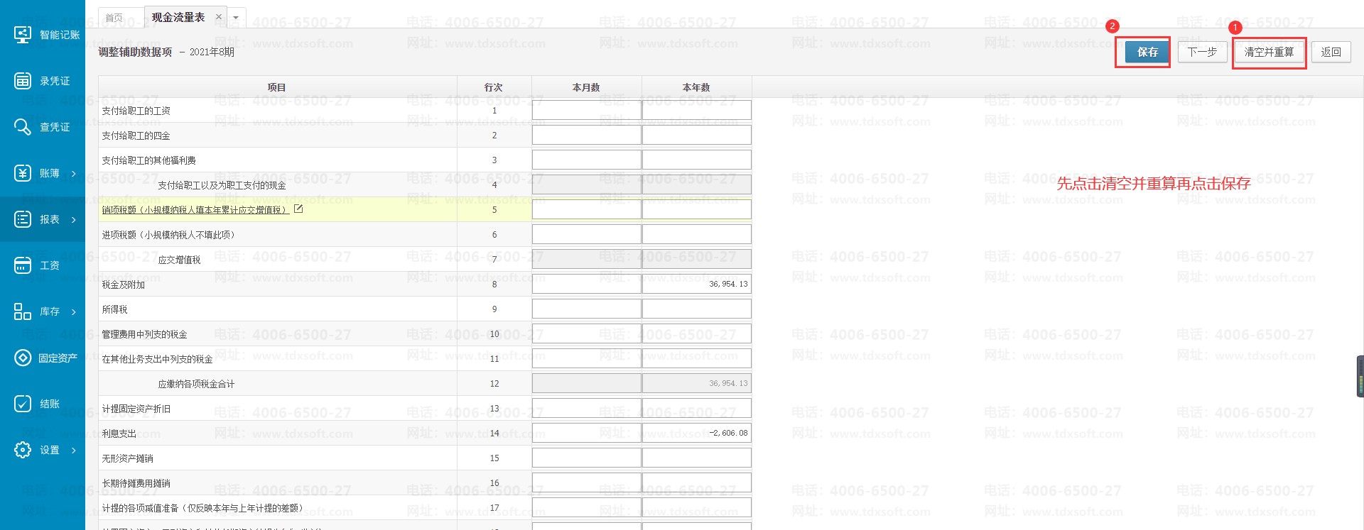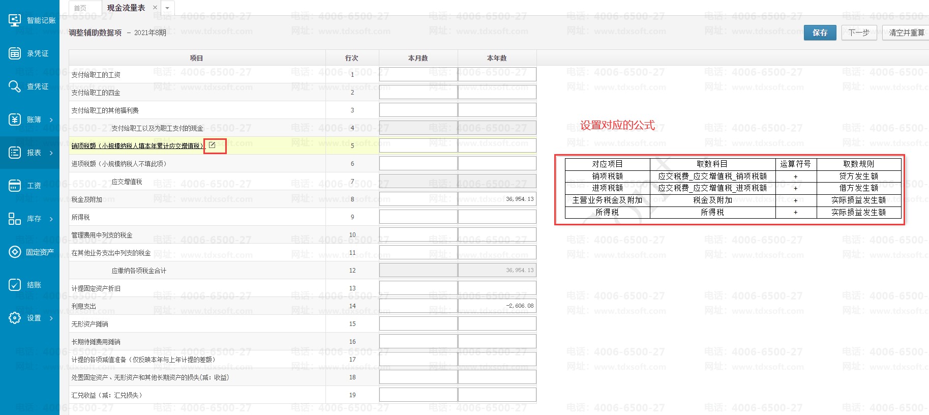 金蝶账无忧现金流量表【支付的税费】项为负数的调整方式