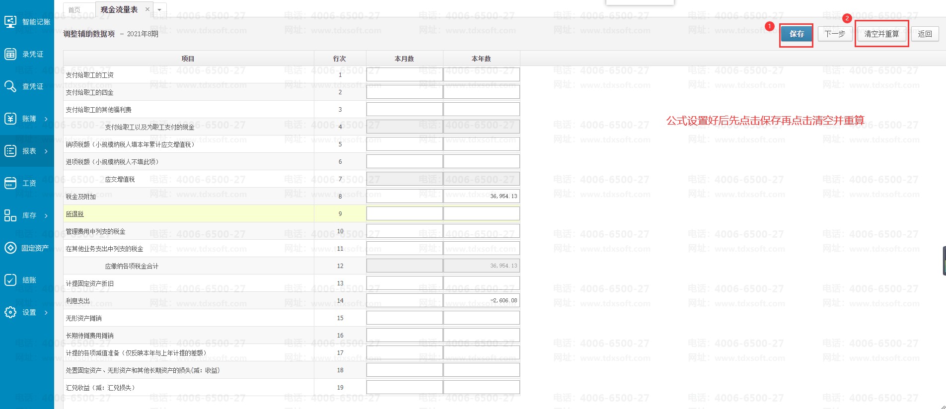 4、加到主表界面后先点击【清空并重算】后再点击【保存】即可