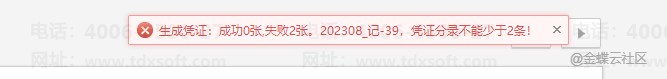 账无忧发票汇总生成凭证失败,提示“凭证分录不能少于2条”该如何处理