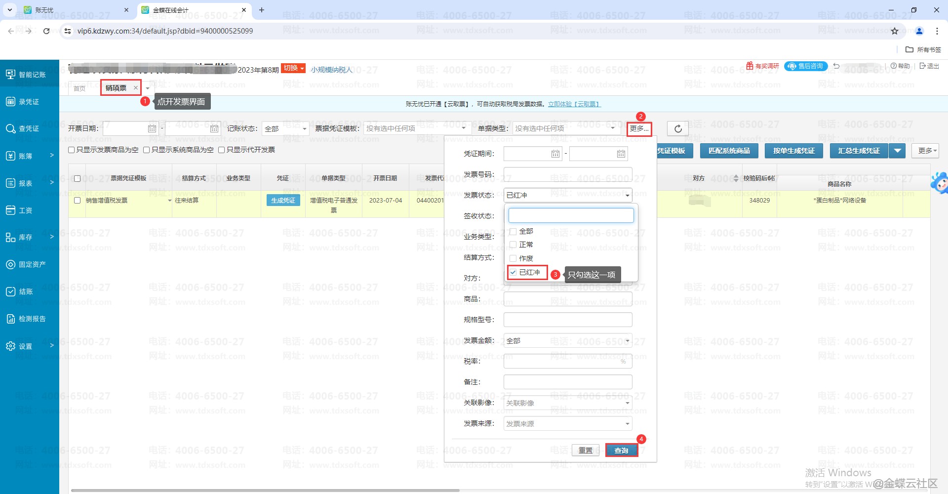 账无忧如何只筛选已红冲的发票