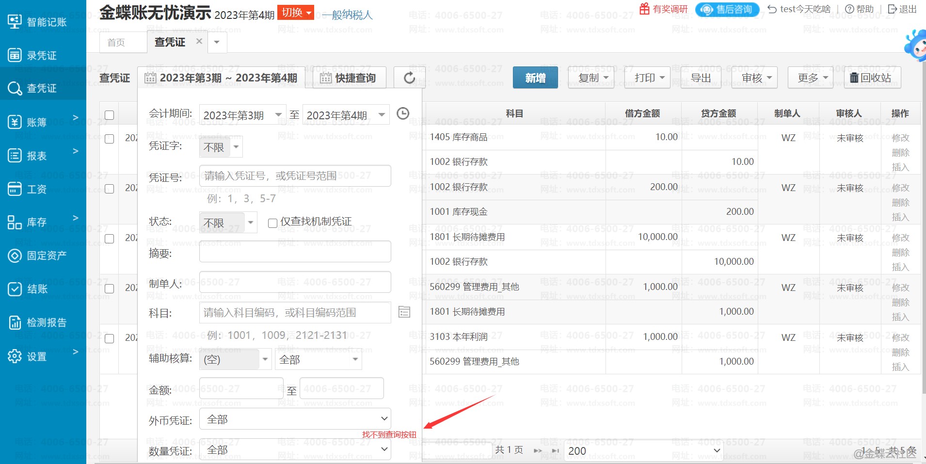 金蝶账无忧查凭证页面显示不全没有查询按钮