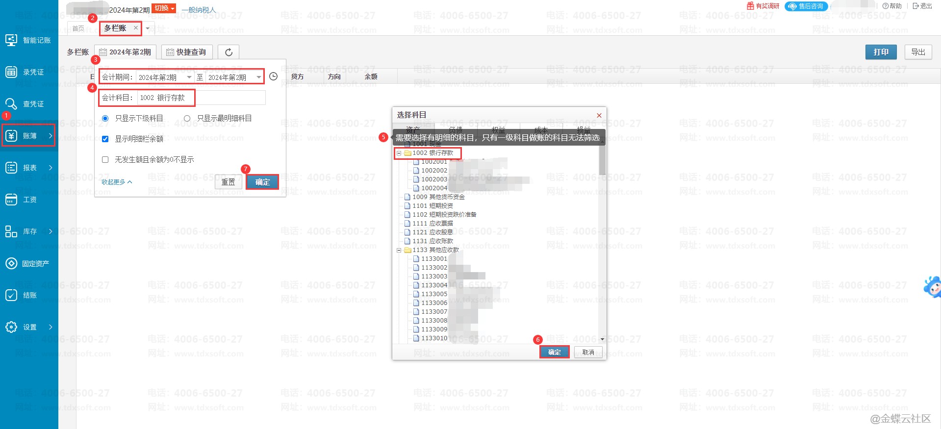 账无忧如何筛选某个科目的多栏账