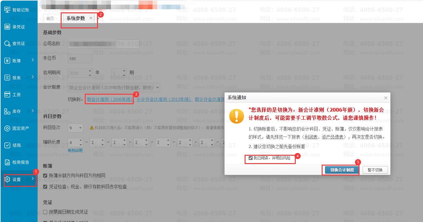 3.切换会计制度,切换为【新会计准则(2006年颁)】