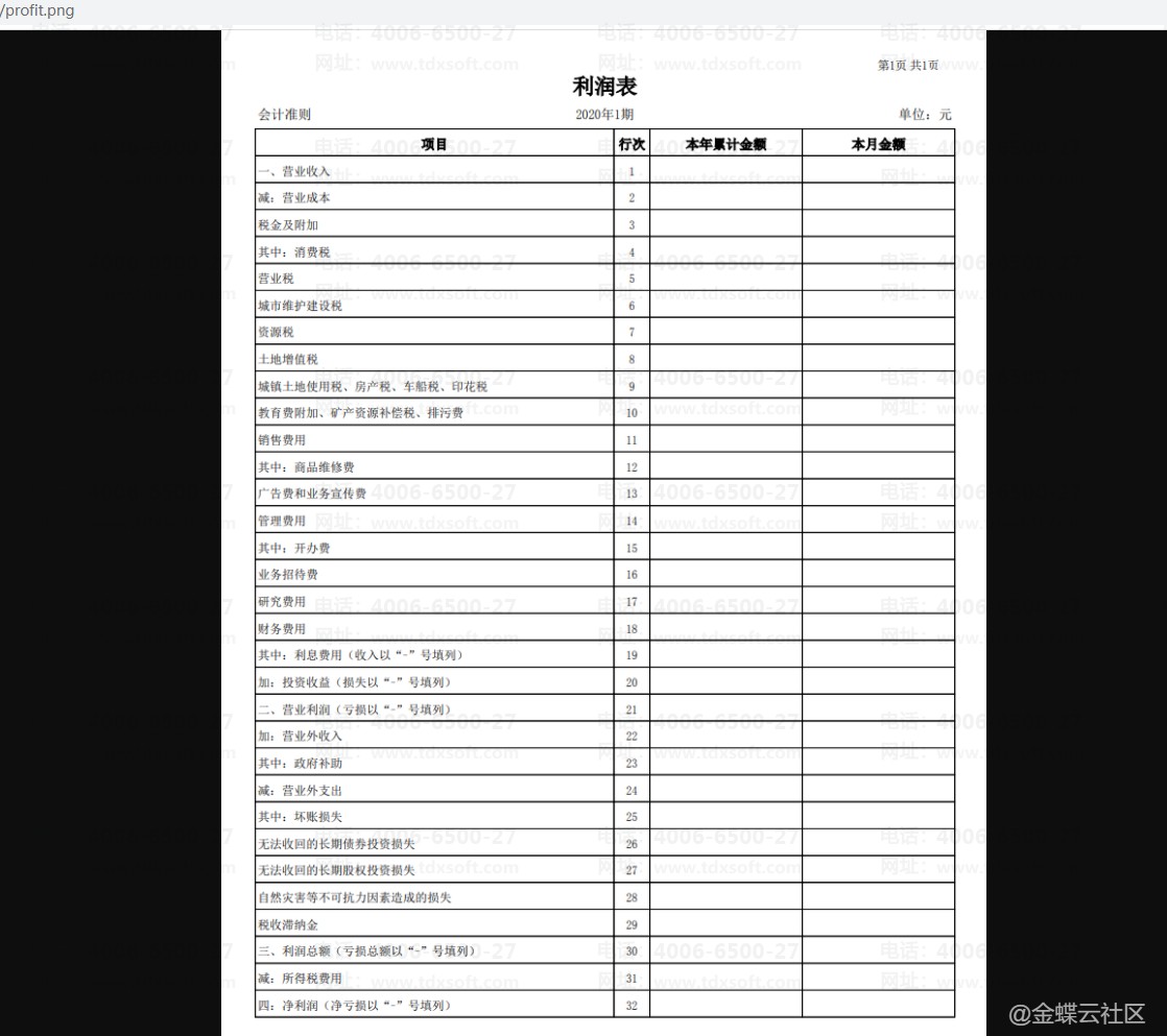 由于系统中资产负债表和利润表是严格按财政部统一制定的报表格式设置的,因此系统预设的报表格式是不能更改和调整的。