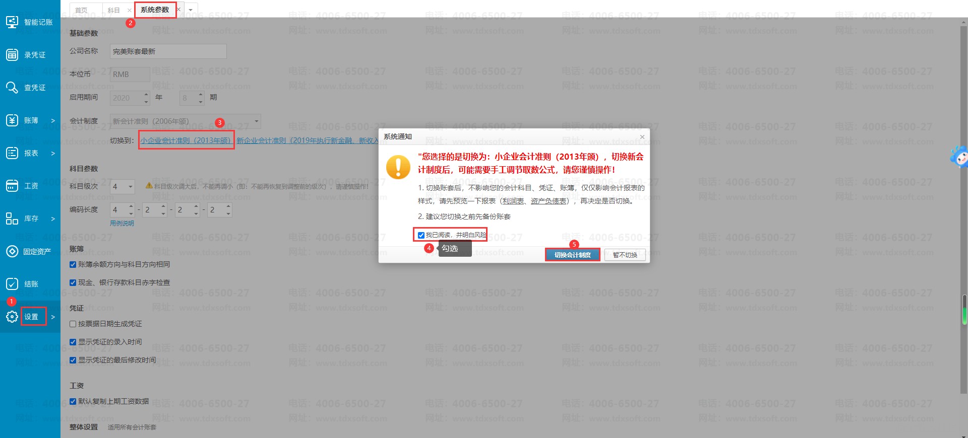 注:建议操作切换会计制度之前,先备份当前账套数据