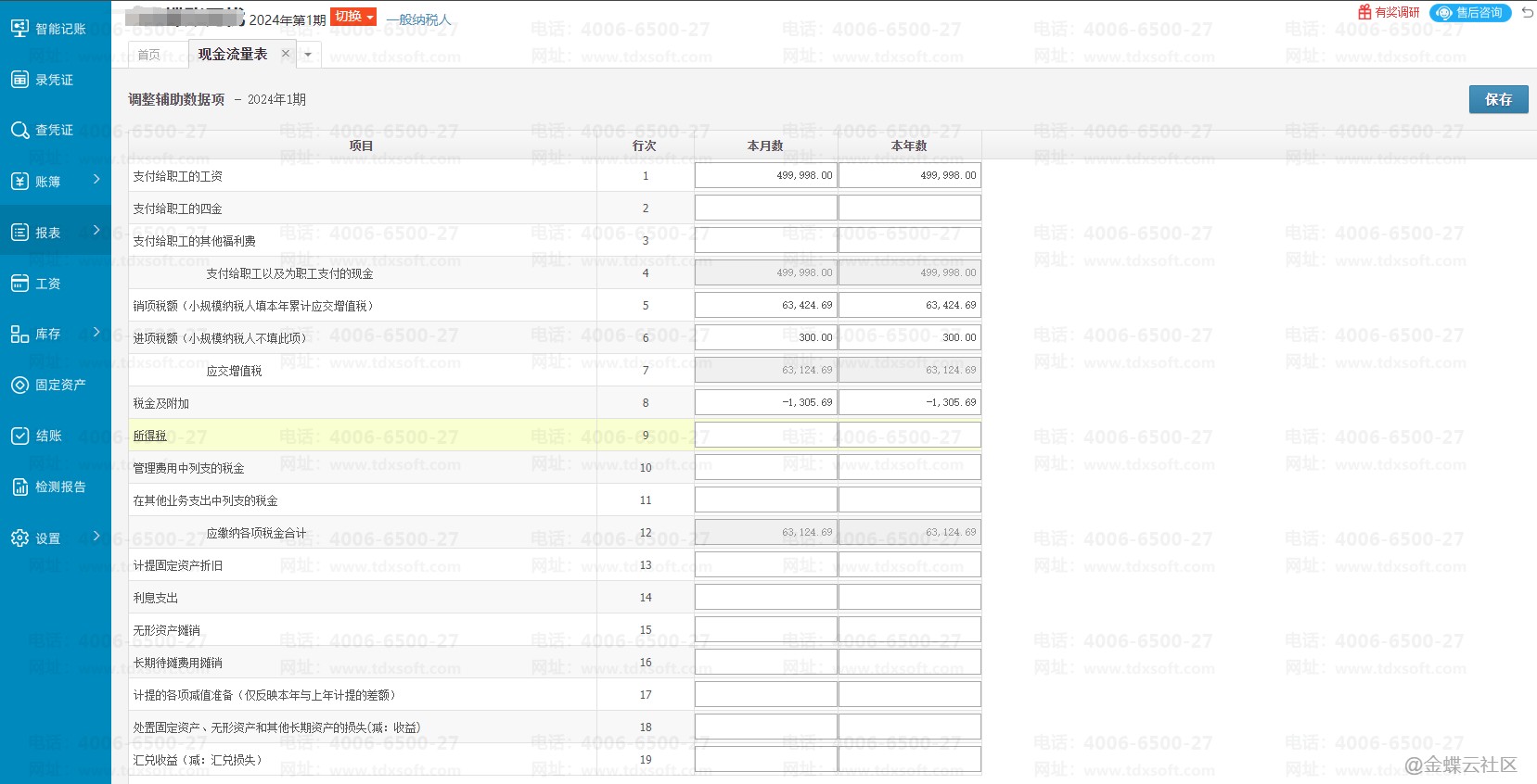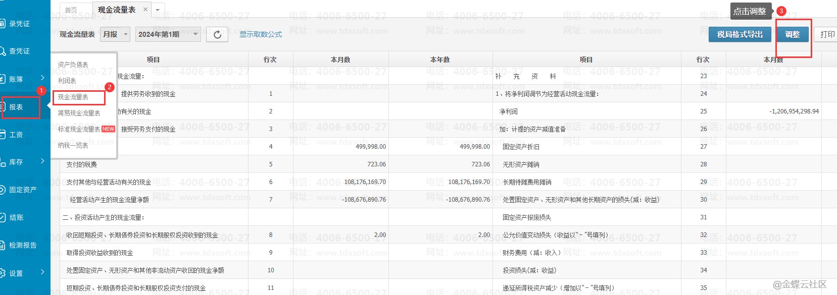 表外是指现金流量表项目外的其他的项目数据,点击现金流量表右上角的【调整】按钮,进去查看。