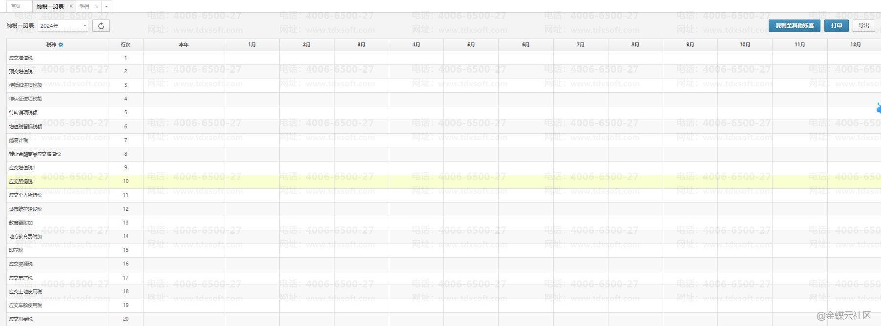 金蝶账无忧纳税一览表没有数据怎么处理