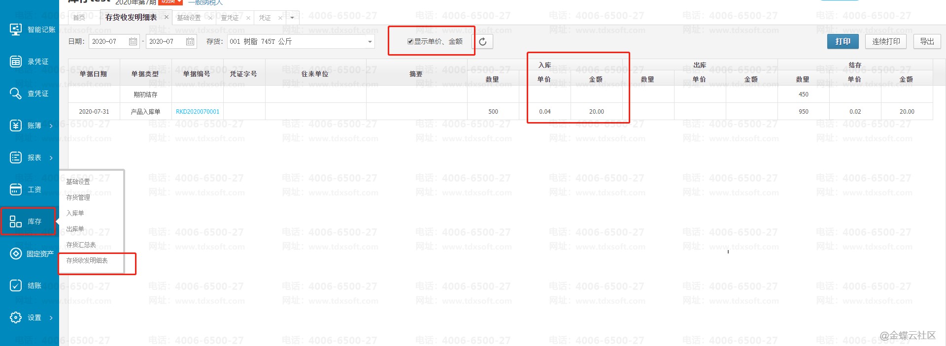 金蝶账无忧存货收发明细表如何显示单价和金额