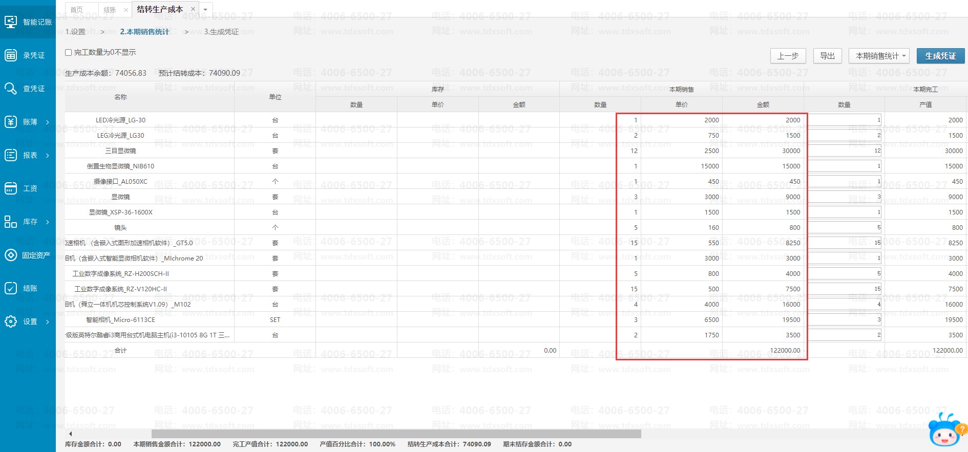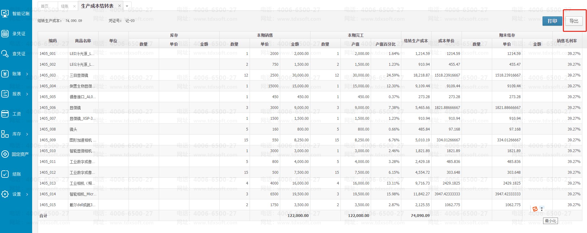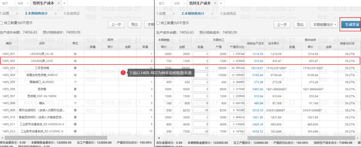 2.导出生产成本结转表