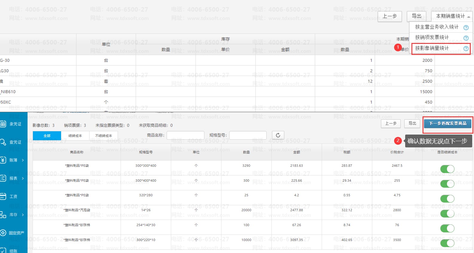 注意:选择按影像销量统计后,界面上显示的本期销售数据来源于【理票据】本期销项发票上的数据。