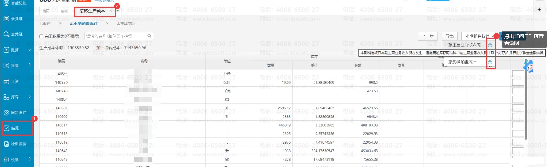 V6.0版本账无忧生产成本的本期销售统计三种方法有什么区别吗