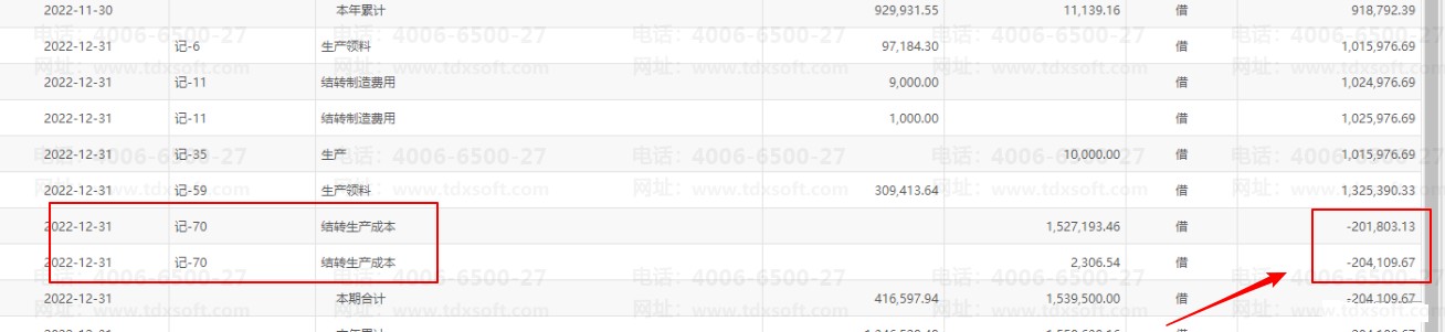 1. 首先检查明细账,查看设置的生产成本科目是从第几期开始负数的