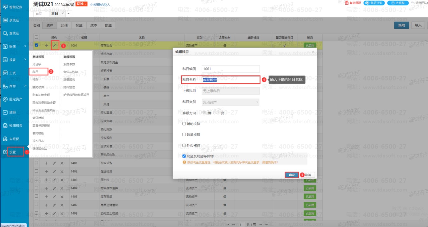 进入账套后选择【设置】→【科目】找到需要修改的科目点击旁边的笔进行修改,修改好后点击确定即可。