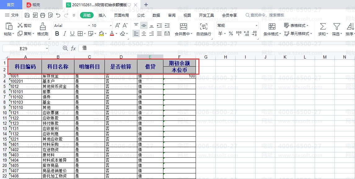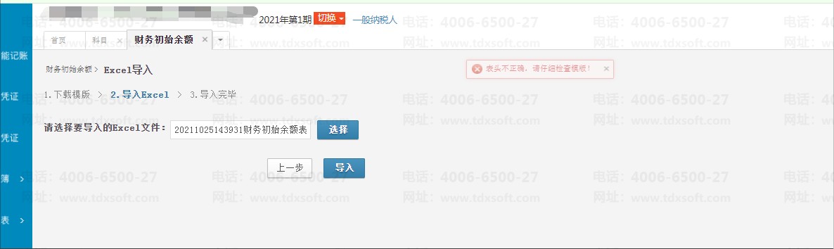 【问题现象】导入财务初始余额提示“表头不正确,请仔细检查模板”