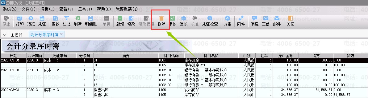 注意:凭证需要是未审核未过账的情况才能删除,若是已经审核过账了需先反过账反审核。