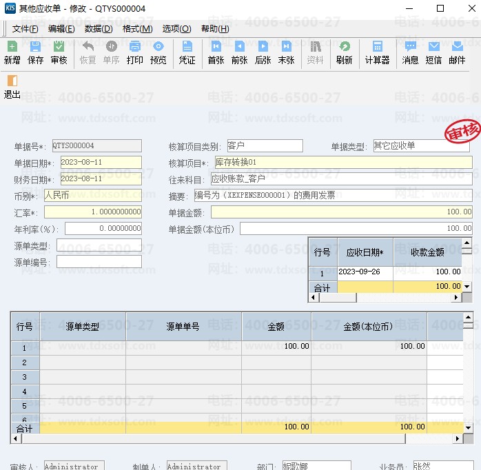 旗舰版金蝶费用发票如何生成对应的其他应收单