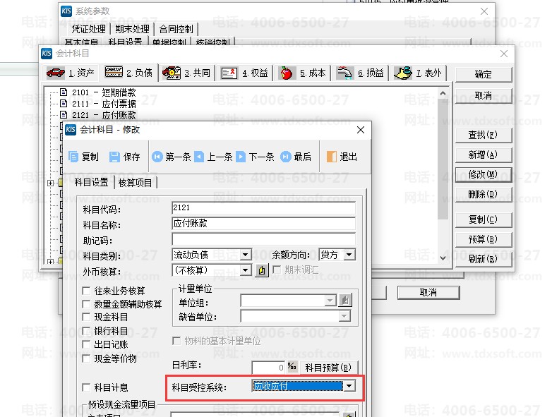 金蝶旗舰版应付系统参数设置科目确定提示采购发票的科目不是受控科目