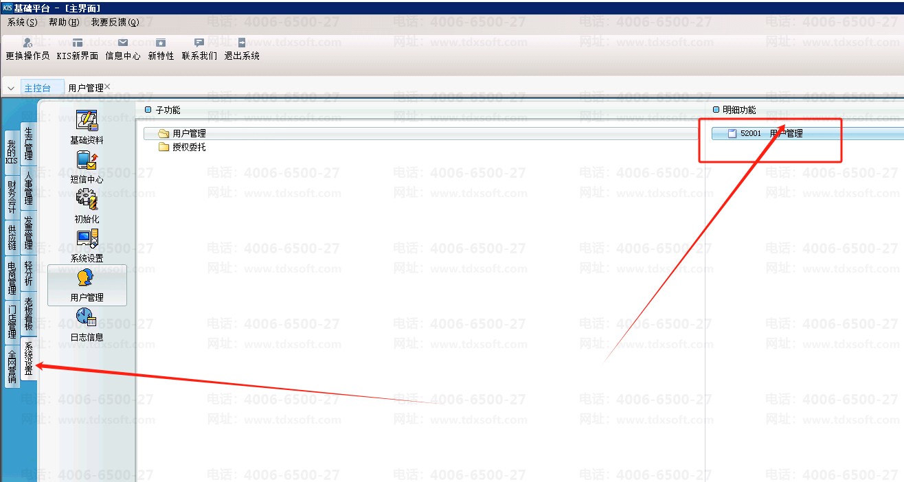 1、[网络控制工具]的用户权限设置需通过进入-[系统设置]-[用户管理]-选中单击需要设置权限的用户