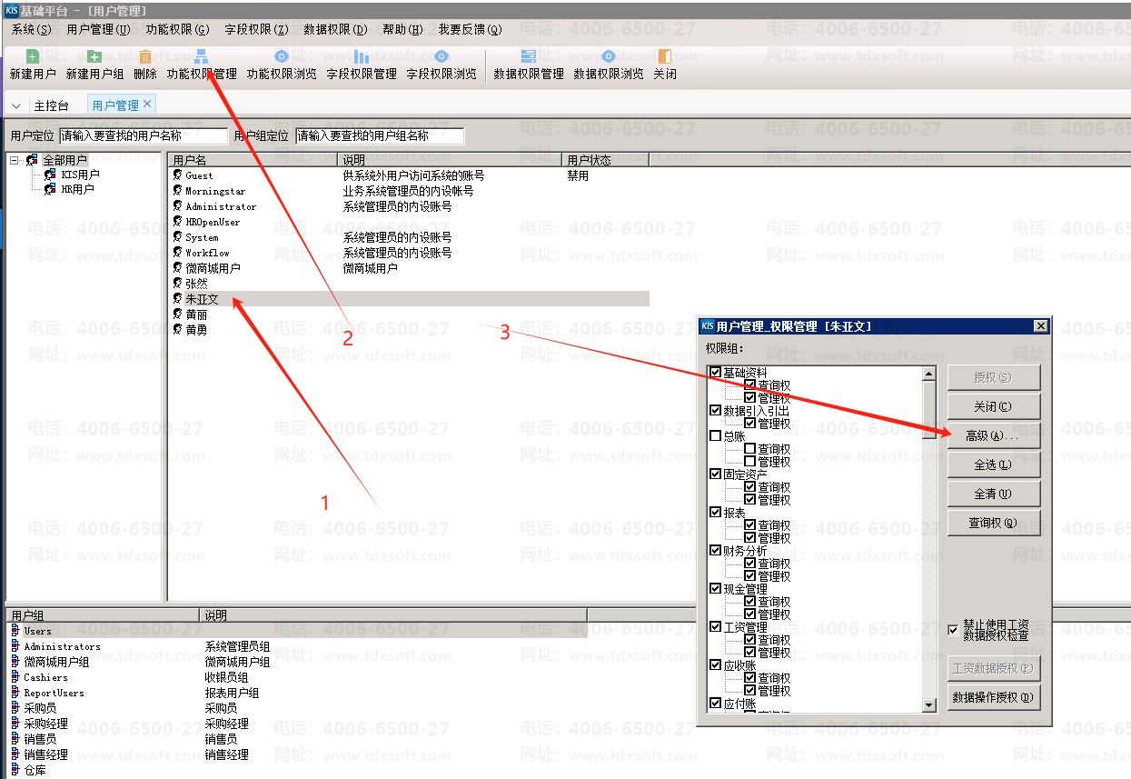 旗舰版金蝶中网络控制工具的用户操作权限在哪里设置