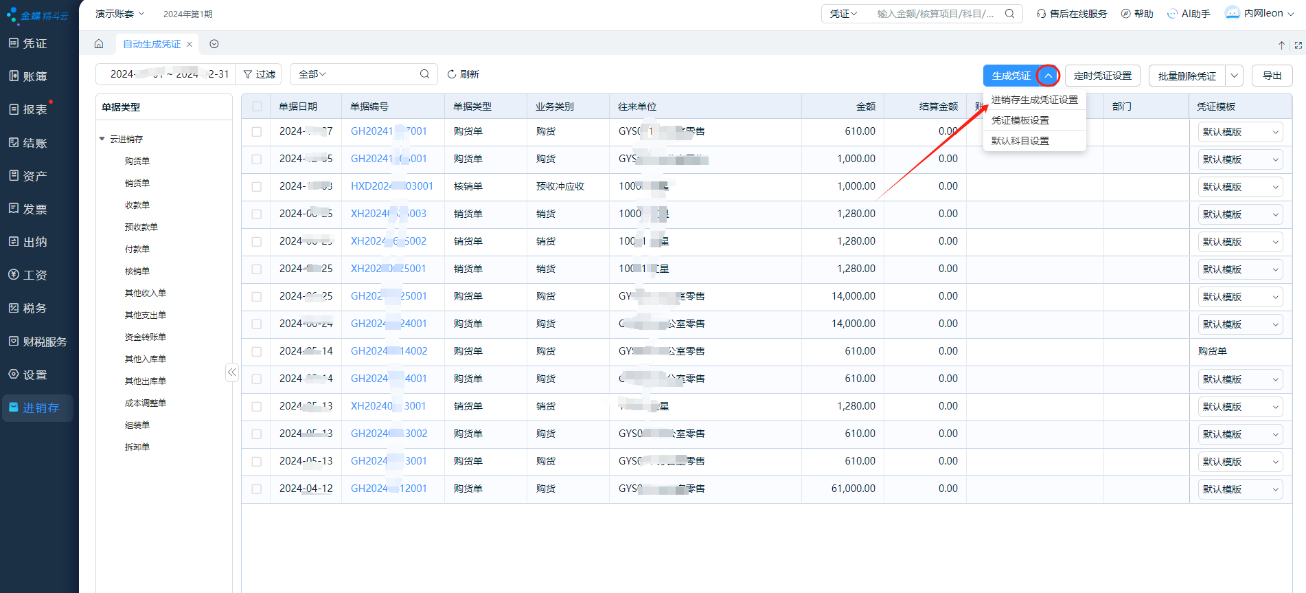 3、生成进销存凭证
