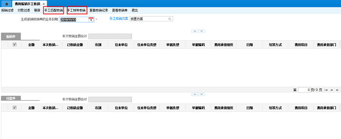 手工匹配核销是根据核销方案进行手工核销,手工特殊核销支持不同往来单位、不同币别的付款单与报销单进行核销。