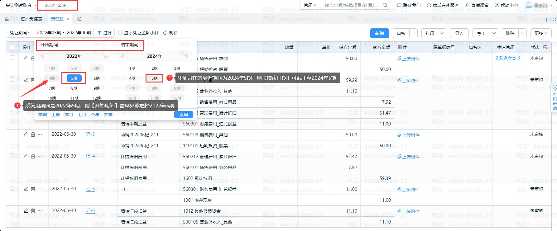 即使后面期间有录入凭证,查询账薄和报表也不能超过该期间范围。