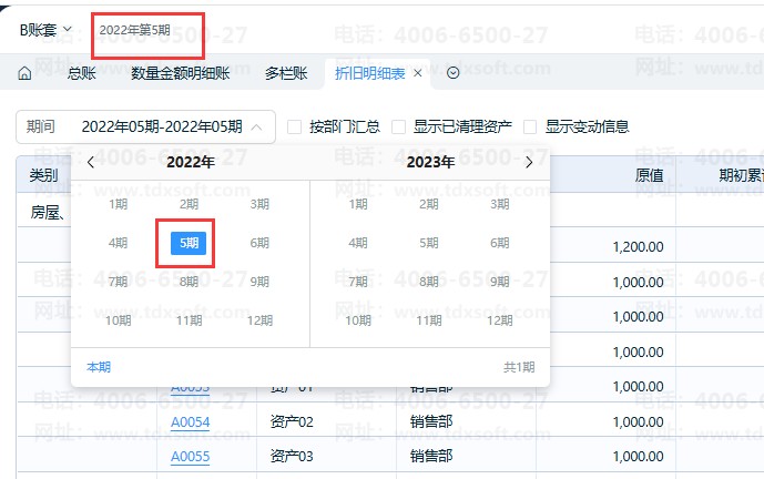 ③折旧明细表、折旧汇总表只能查到截止到当前期,不能查以后期间。
