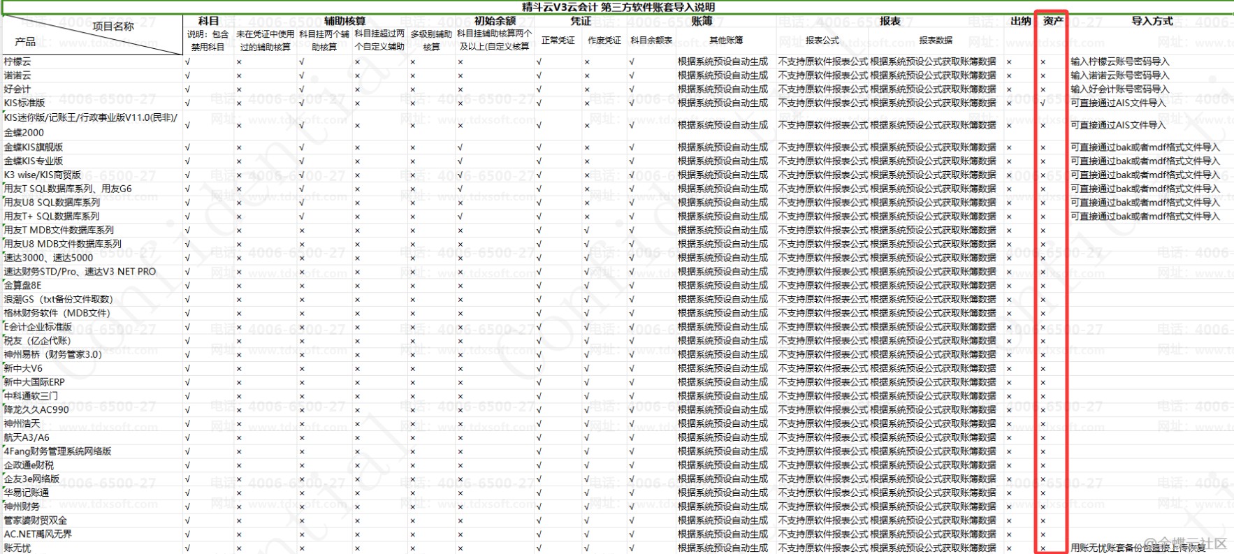 1、第三方财务软件数据导入支持如下: