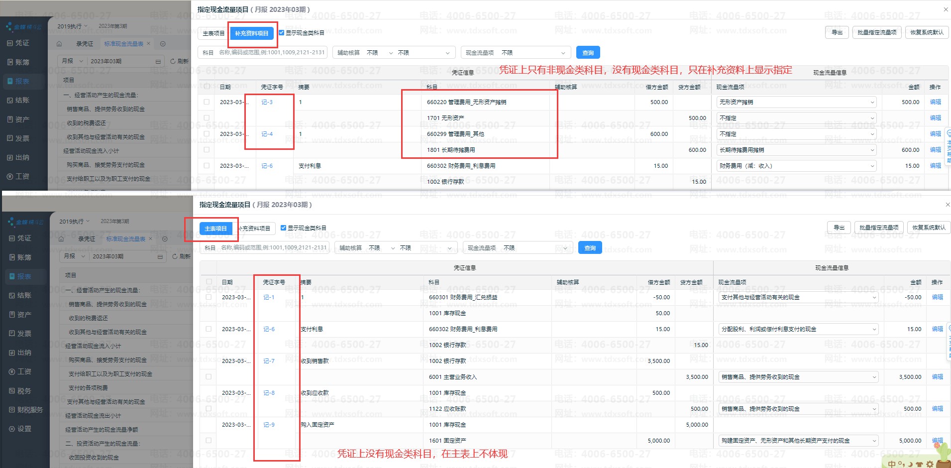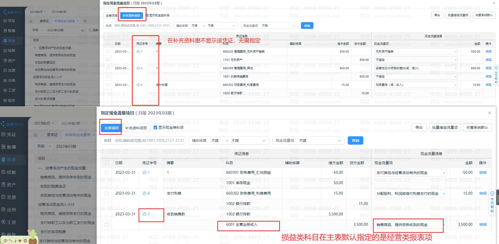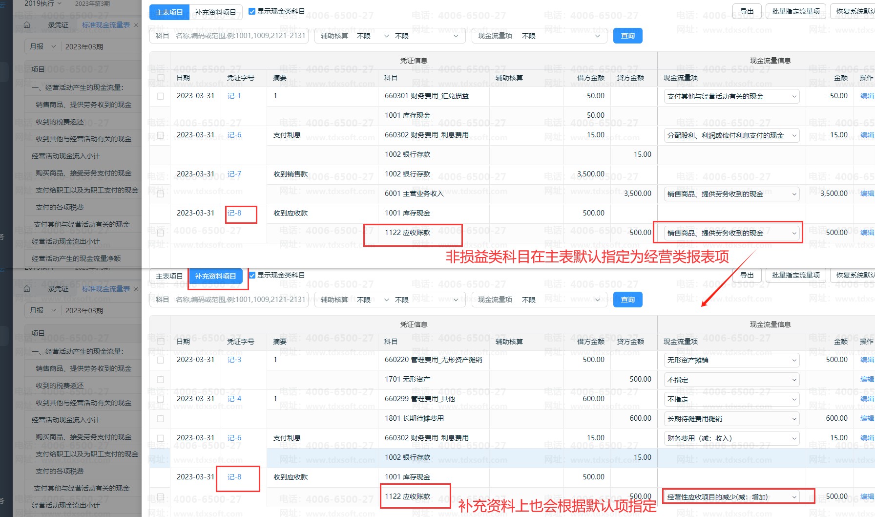 如图,损益类科目在主表指定的是非经营类报表项,补充资料里也指定了:![]() 如图,损益类科目在主表指定的是经营类报表项,在补充资料无需指定: ![]() |