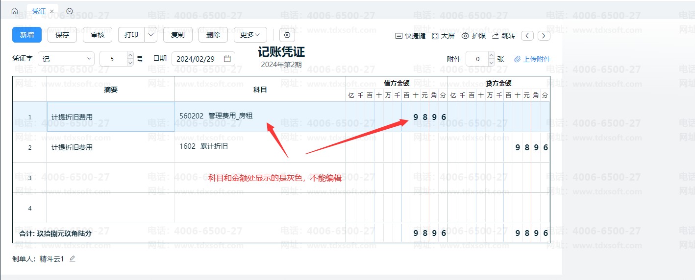 金蝶云会计凭证中科目和金额不能修改是什么原