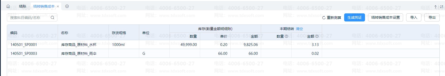 如结转成本界面确实只需要取某个科目的明细数据,可根据自己需求设置明细科目。