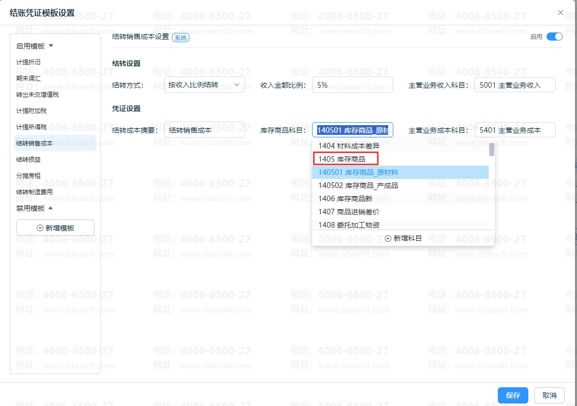 云会计结转销售成本库存商品科目如何设置