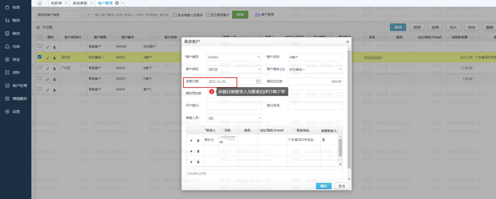 1、期初余额的日期录入是否正确,如:账套是2021年11月1日启用的,则在客户资料中录入期初应收余额是余额日期要录入为2021年11月1日及以前。