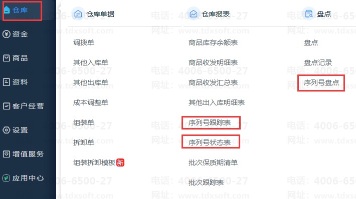 4、 序列号报表及序列号盘点